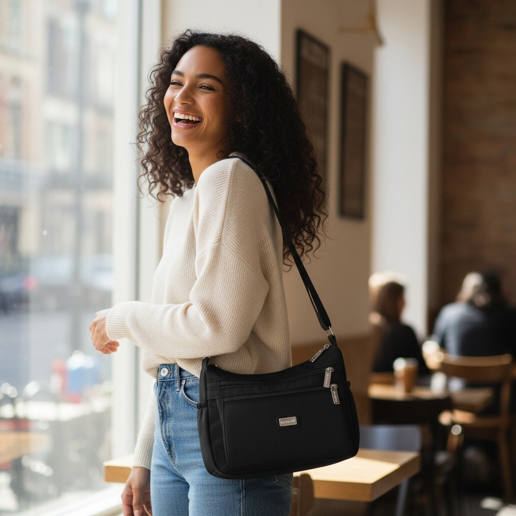 Cartera de mujer tipo BANDOLERA realizada en poliéster . Un diseño para destacar tu outfit. Tamaño MEDIANO con buen espacio interior.
