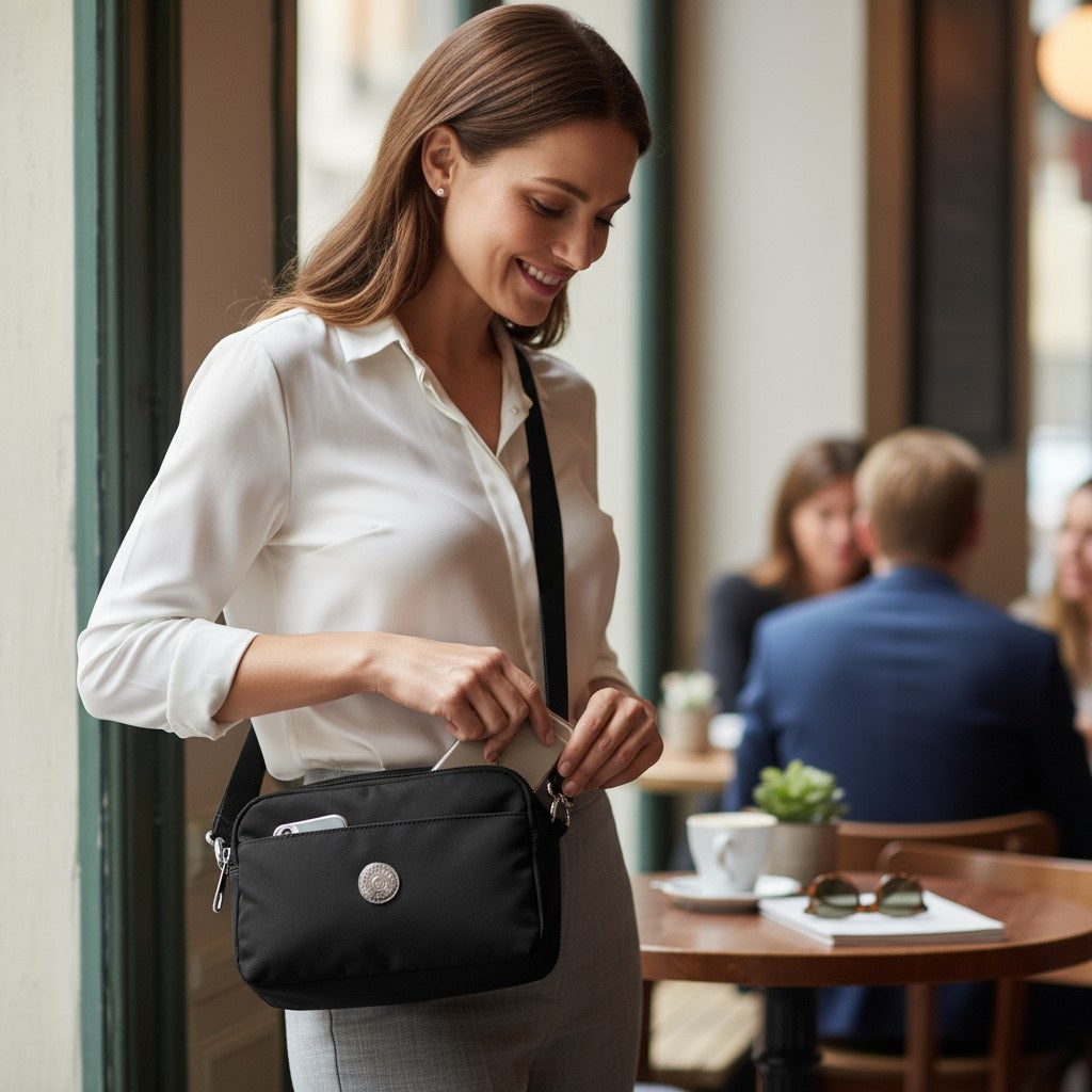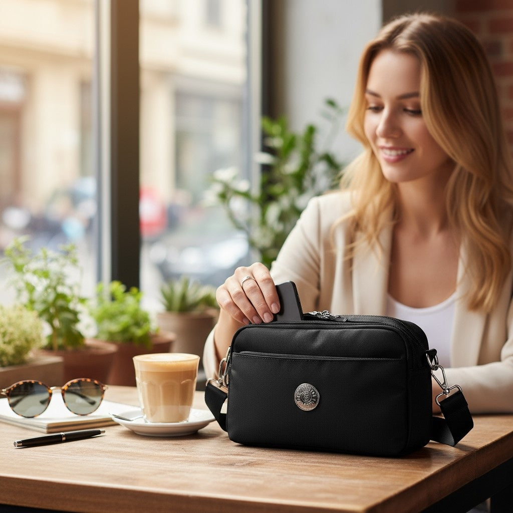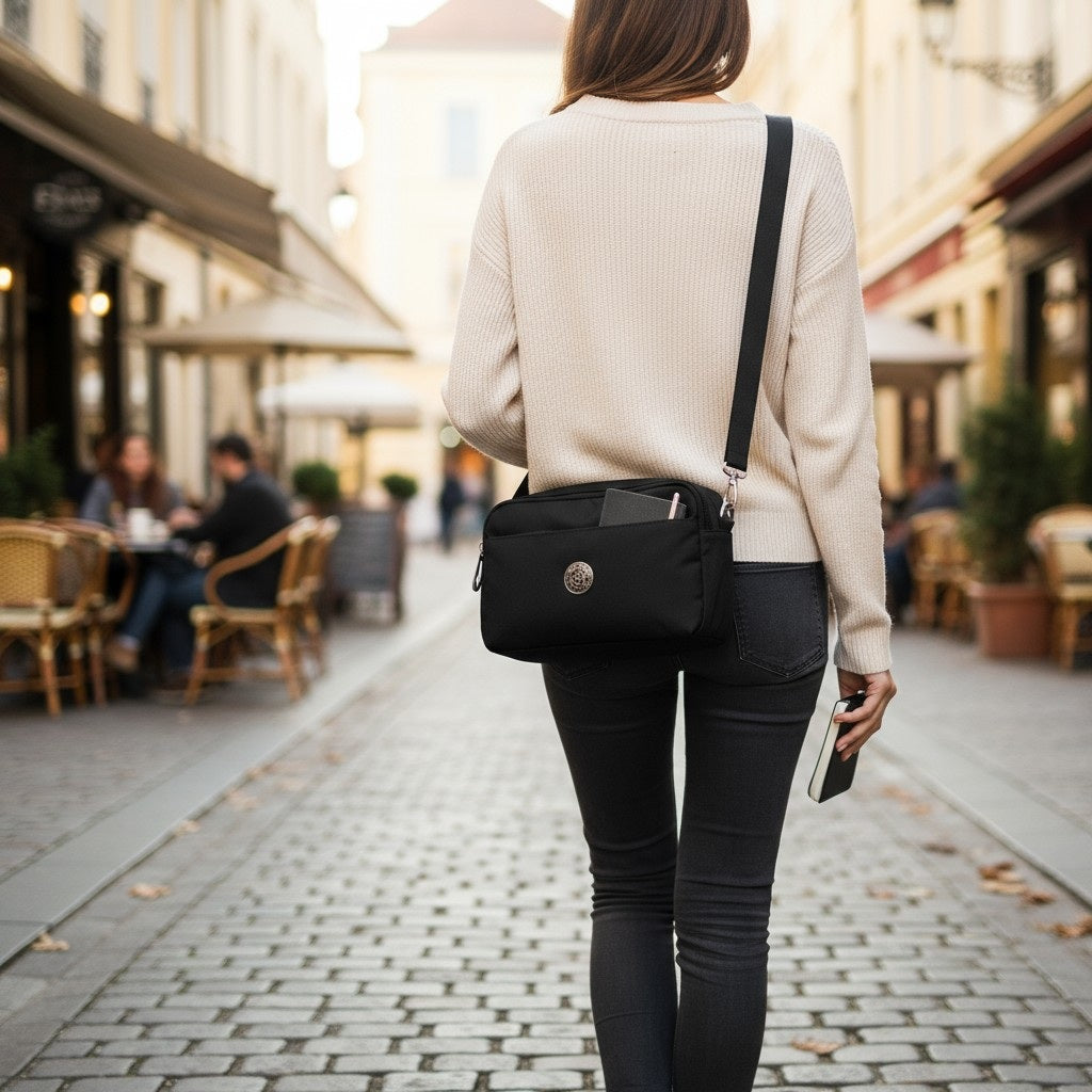 Cartera de mujer tipo BANDOLERA realizada en poliéster . Un diseño para destacar tu outfit. Tamaño MEDIANO con buen espacio interior.