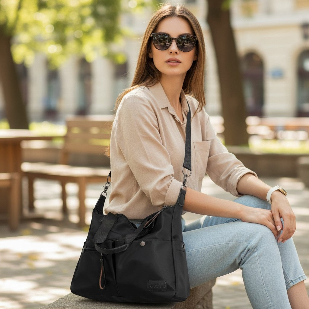 Cartera de mujer tipo BANDOLERA realizada en tela poliéster. Resistente al agua y con muchos bolsillos. Un diseño para destacar tu outfit. Tamaño GRANDE con buen espacio interior.