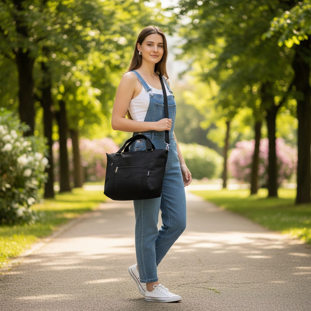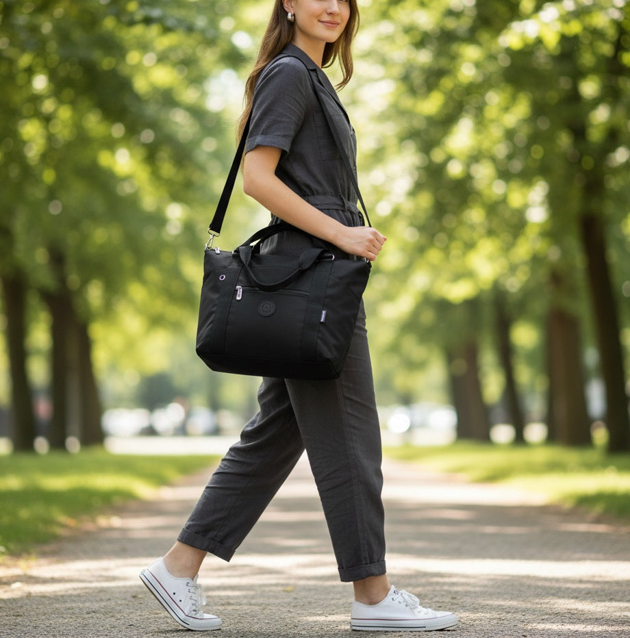 Cartera de mujer tipo BOLSO realizada en tela poliéster. Resistente al agua y con muchos bolsillos. Un diseño para destacar tu outfit. Tamaño GRANDE con buen espacio interior.