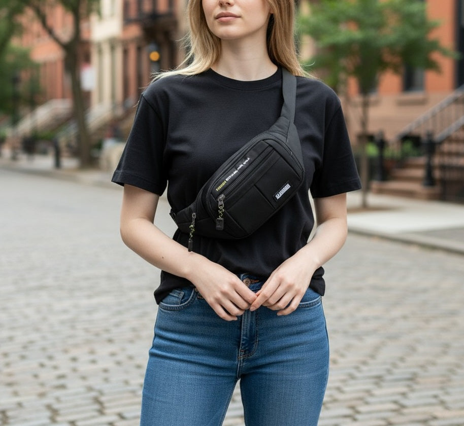 Riñonera Multiuso, ideal para viaje o para aquellos días que quieres estar ligera de cosas. Tiene 3 reparticiones ubicadas estratégicamente. Puedes llevarla en la cintura o como bandolera. UNISEX