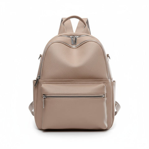 Mochila en símil cuero de alta calidad tamaño mediano. Una belleza, con bolsillo exterior de buena capacidad con cierre. .