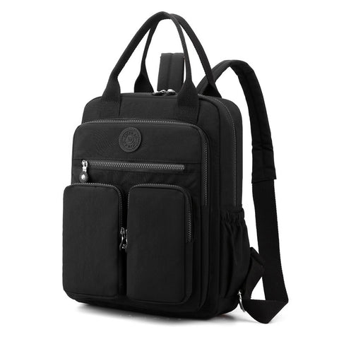 MOCHILA MEDIANA en NYLON de buena calidad y diseño. Tiene bolsillo interiores, uno de ellos con cierres de buen tamaño .