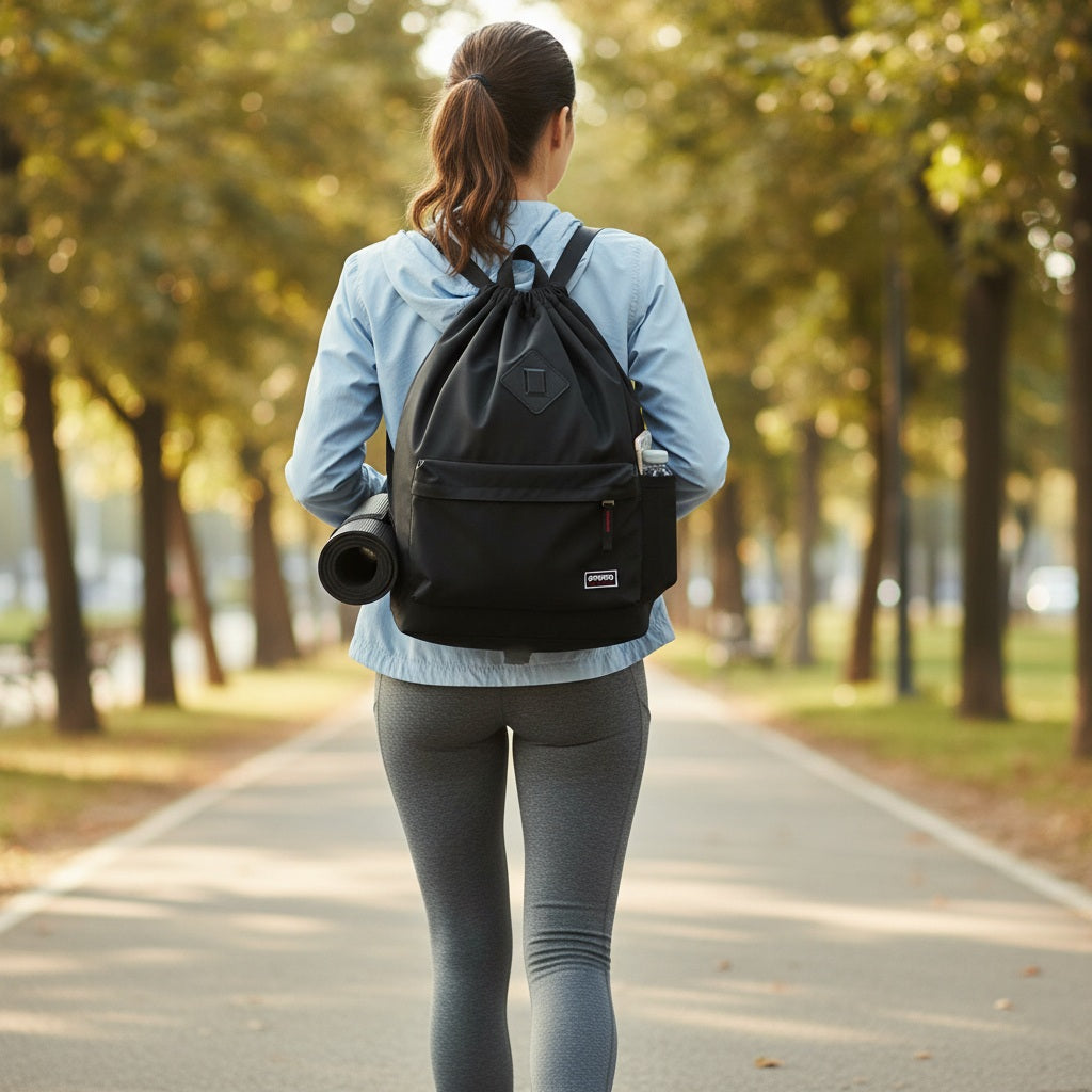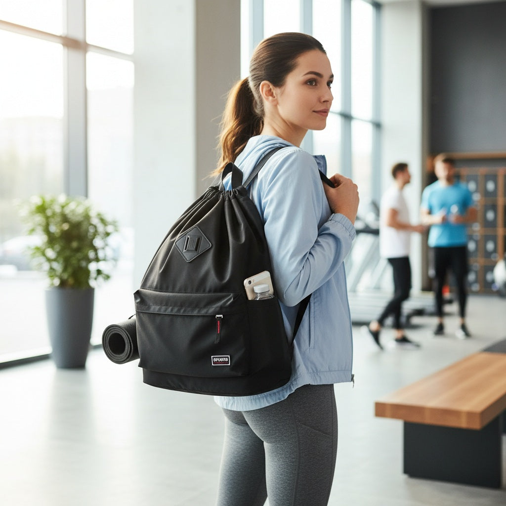 Mochila, en lona poliester ideal para hacer deportes y para todo momento y en un gran tamaño. Apta para guardar artículos de deportes x su tamaño. Tiene bolsillo exteriores e interno para documentos y/o celular.