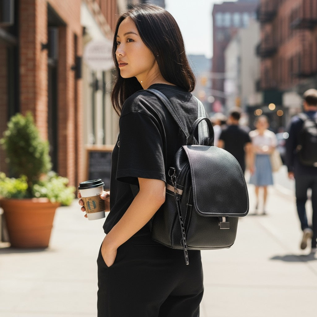 Mochila en CUERO con diseño minimalista. Con 2 reparticiones y finas terminaciones. Tiene 2 cierres exteriores y es de buena capacidad.