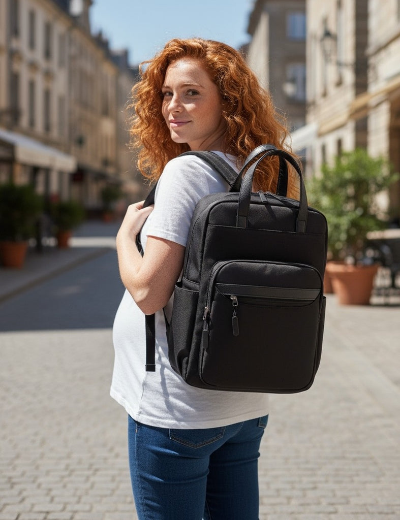 MOCHILA GRANDE en tela poliéster de ALTA calidad y diseño, con finas terminaciones y tamaño adecuado para llevar algunas CUADERNOLAS . Muy versátil puede adaptarse a diferentes usos,  opción para VIAJE, ESTUDIOS y/o MATERNAL Una combinación ideal entre DISEÑO Y TAMAÑO. Tiene bolsillo interiores, uno de ellos con cierres de buen tamaño. . Dispone en su reverso un bolsillo de seguridad y una correa para sujetar a tu valija.
