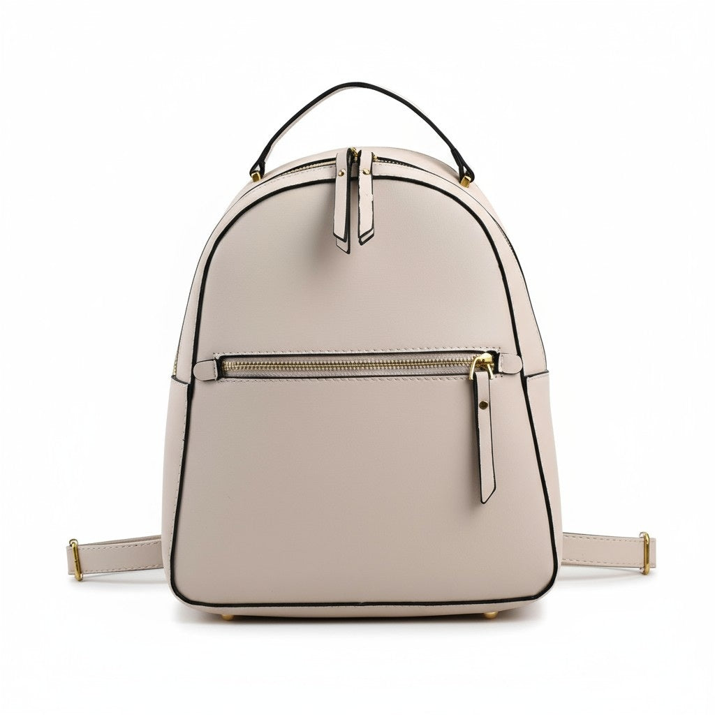 Mochila en símil cuero de alta calidad tamaño mediano. Una belleza, con bolsillo exterior de buena capacidad con cierre. También dispone de bolsillos internos para documentos y teléfono móvil.