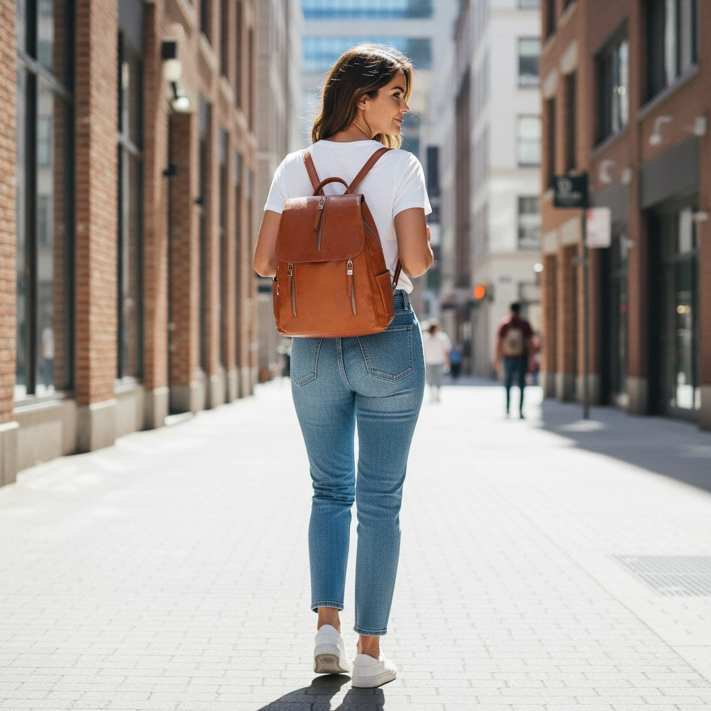 MOCHILA en cuero ecológico de alta calidad. Ideal para VIAJES. Una combinación ideal entre DISEÑO Y TAMAÑO. Con finas .