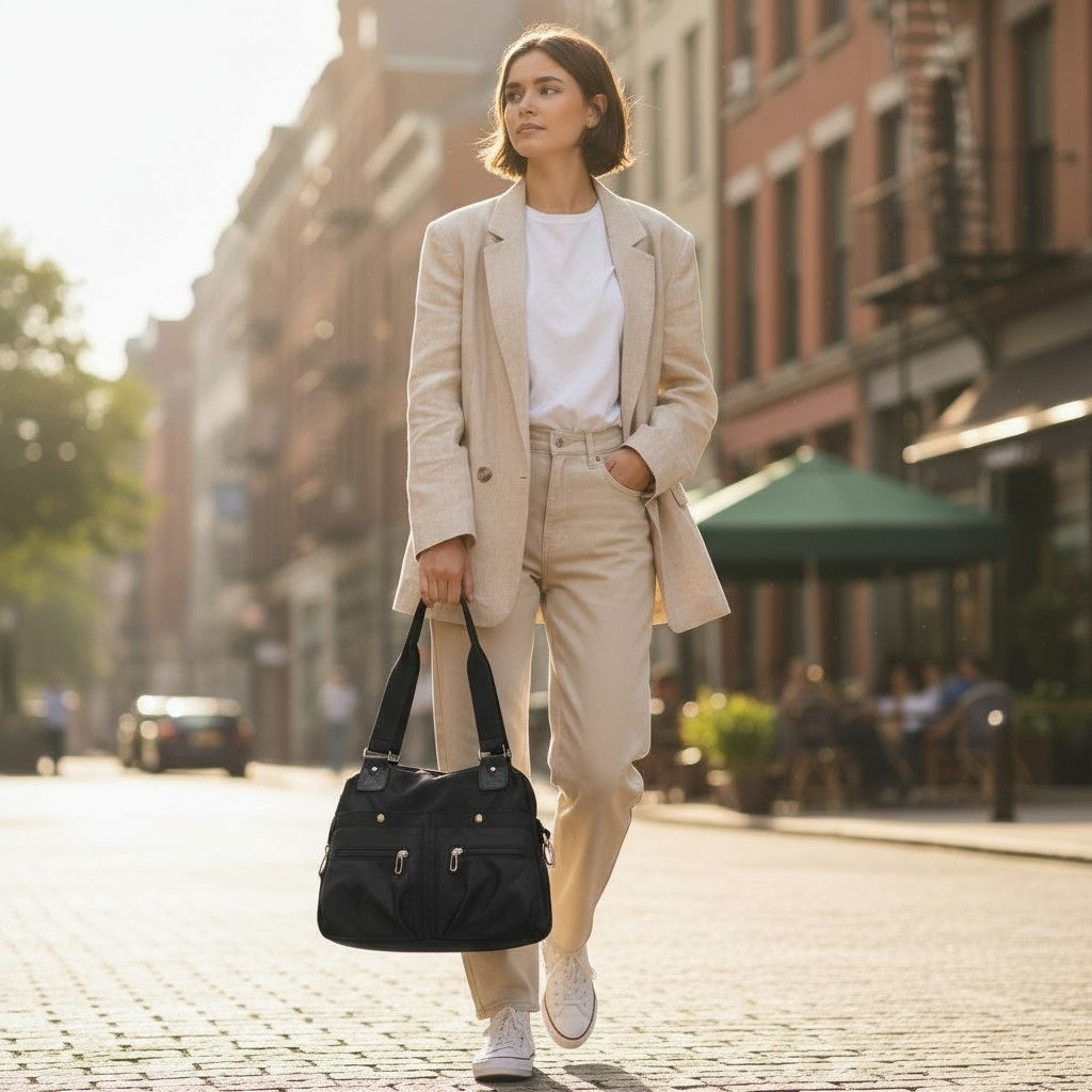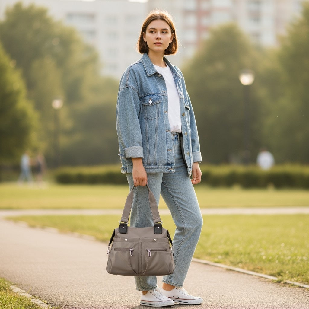 Cartera de mujer tipo BANDOLERA realizada en tela Nylon poliester. Resistente al agua y con muchos bolsillos. Un diseño para destacar tu outfit. Tamaño GRANDE con buen espacio interior.